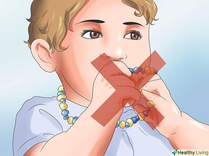 Не дозволяйте малюкові жувати намиста.намиста призначені для того, щоб їх носили, а не жували. Коли ваша дитина жує намистинки, є ймовірність загрози захлинання.