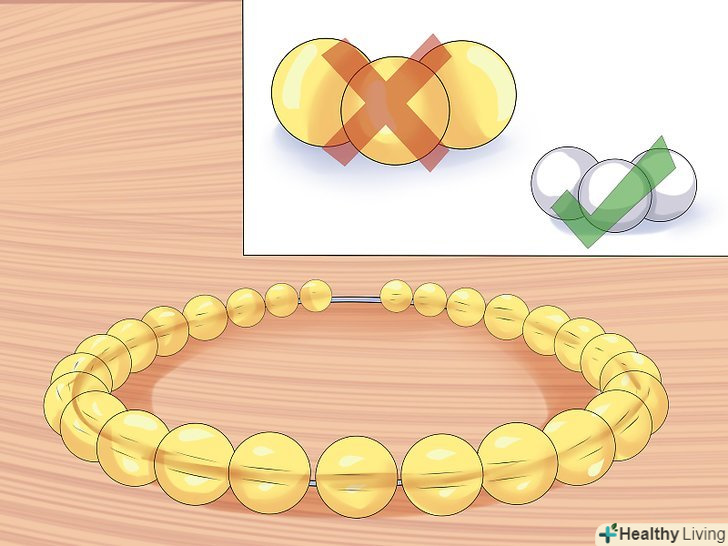 Виберіть намисто з правильним розміром намистин.спробуйте намиста з маленькими намистинками, так як може виникнути загроза удушення через те, що дитина буде з великими, важкими намистинками на шиї. Тим не менш, ви не повинні залишати дитину без нагляду.- Пошукайте круглі намистинки, щоб дитина не порізався об гострі краї.