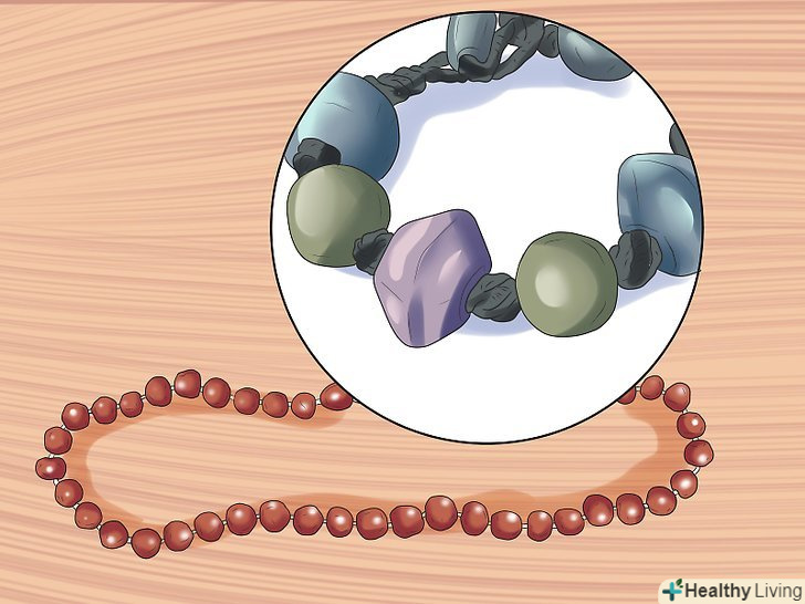 Пошукайте намиста, щоб між кожною бусинкою були нитки.подивіться уважно на намиста; Чи бачите ви нитки між намистинками? Ці нитки допоможуть запобігти випадання всіх намистин, якщо намиста порвуться. Це важливо, так як якщо намиста без ниток порвуться, окремі намистинки можуть загрожувати здоров'ю вашої дитини.
