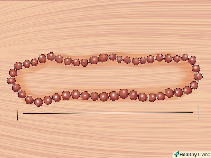 Пошукайте намиста, які будуть підходити вашій дитині.намисто, як правило, 31-36 см завдовжки. Щоб підібрати потрібний розмір, виміряйте шию дитини. Потім пошукайте намиста, які трохи більше шиї дитини, щоб вони не натискали.- У той же час, вам не слід купувати довгі намиста, які будуть діставати до грудей дитини. Так як такі намиста дитині буде легше розірвати.