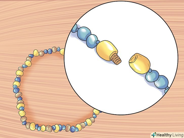 Доглядайте за дитиною, поки він носить намиста.вони зроблені з маленьких деталей, і можуть стати небезпечною іграшкою для вашої дитини. Тому важливо дивитися за дитиною, поки він носить намиста.- Знімайте намиста, коли дитина спить, або коли ви повинні вийти з кімнати і не зможете доглядати за ним. Дуже важливо знімати намиста під час сну, так як вони можуть здавлювати шию, або виривати волоски.