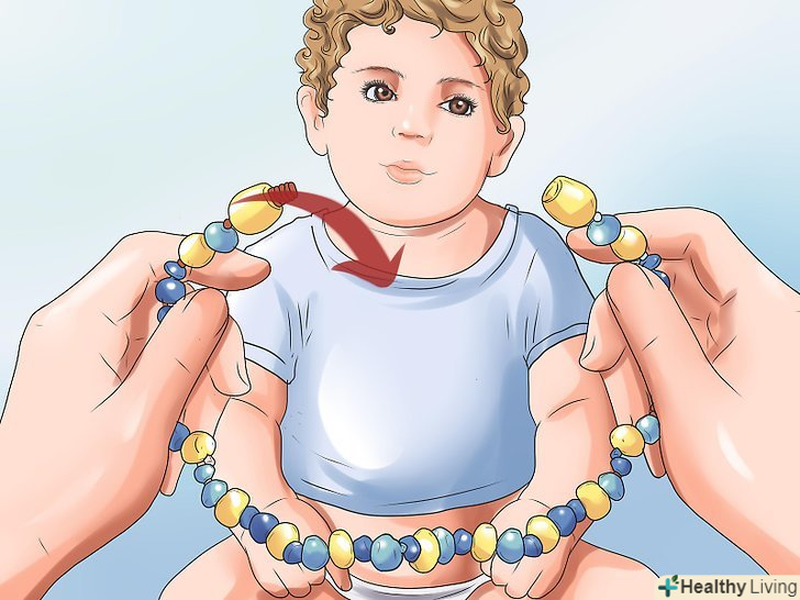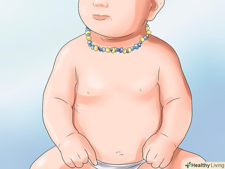Виберіть намиста з Балтійського бурштину.у цьому Бурштині міститься кислота, яка знімає запалення і біль. Дивіться, щоб не купити підробку з пластика, так як вони не принесуть ніякої користі вашій дитині. Пам'ятайте, що не у всіх дітей намиста знімуть біль, але багато батьків вірять, що намиста допоможуть.[1]- Коли ви надягнете намиста на дитину, вони нагріються від тепла тіла. Коли намиста нагріються, їх них буде виділятися масло, яке полегшить біль від прорізування зубів.