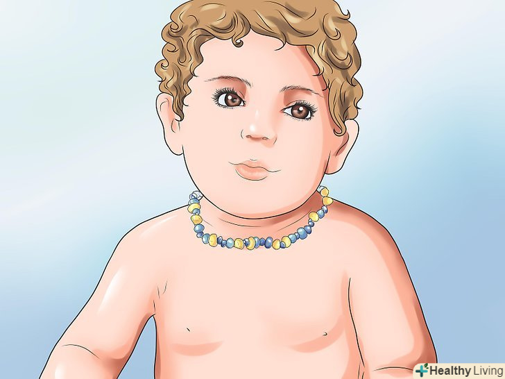 Надіньте намиста на шию дитини.коли будете надягати намиста, переконайтеся, що вони досить вільні, і не натискають на шкіру. Переконайтеся, що застебнули застібку, щоб дитина не змогла їх зняти.