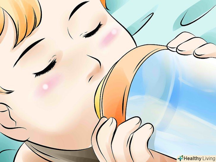 - Тримайте дитину під кутом 45 градусів, щоб він не заковтував багато повітря. Заколисуйте його в діагональній позиції, підтримуючи йому голову. Нахиліть пляшечку немов сосок і дайте дитині. Ніколи не підпирайте шию дитині, так як він може почати задихатися.