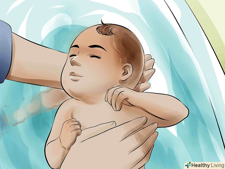 - Змийте мило теплою водою, поливаючи дитину з чашок. Промокніть дитини чистим рушником. Дістаньте дитину з ванни, не забуваючи притримувати голову і шию. Будьте обережні, мокрий дитина може легко вислизнути з рук.