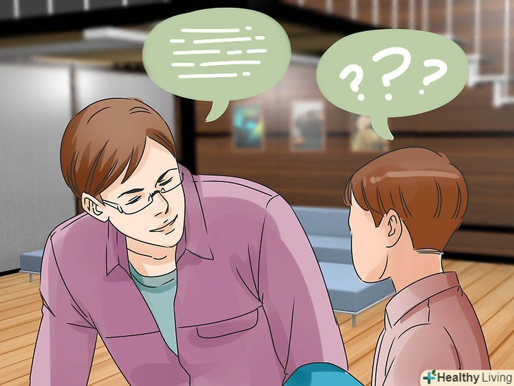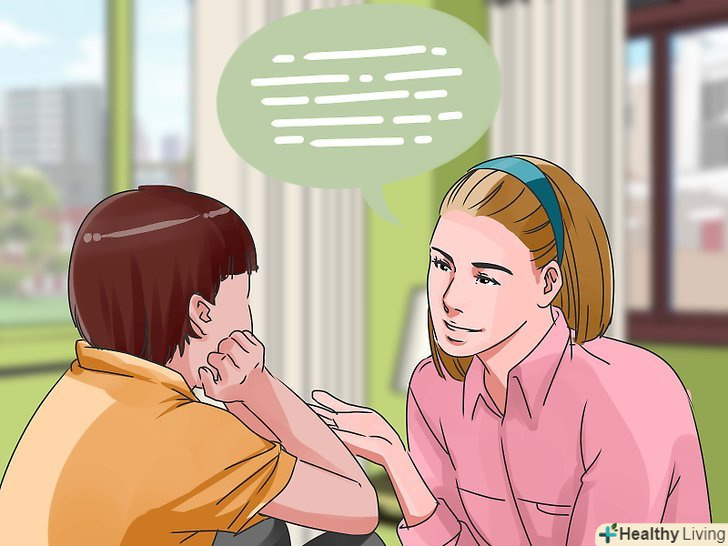 Забезпечте малюкові можливість спілкування з фахівцем.кожна дитина індивідуальна, і для деяких з них піде на користь розмова з професіоналом з приводу тих почуттів, які він відчуває через відсутність члена сім'ї. Ви повинні заохочувати подібне спілкування, якщо помітили будь-які зміни в поведінці дитини, які можуть бути пов'язані з від'їздом другого з батьків.- Відвідування групи підтримки стане відмінним способом допомоги дітям, особливо тим, які переживають смерть одного з батьків або його тюремне ув'язнення. Спілкування з іншими дітьми, які мали подібний досвід, допоможе їм впоратися з власними почуттями.