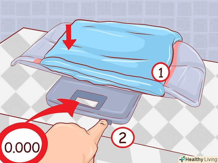 Переконайтеся, що ваги показують 0.Перед використанням цифрових або аналогових ваг спочатку необхідно переконатися в тому, що їх показання дорівнюють нулю. Якщо ви плануєте класти дитину на ковдру, необхідно обнулити вагу на цифровій шкалі. Для цього спочатку помістіть ковдру на ваги, а потім натисніть кнопку тари. Ця дія обнулить показання.