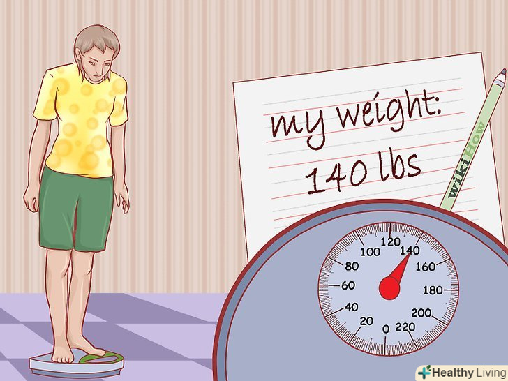 Перевірте свою вагу. Встаньте на ваги. Зафіксуйте показник, а потім запишіть його. В ідеалі необхідно використовувати шкалу, що вимірює з точністю до одного грама. Такий метод менш точний, в порівнянні з вимірюванням на дитячих вагах, але більш доступний в економічному плані.- 1/10 фунта дорівнює 45,36 грам або 1,6 унцій.