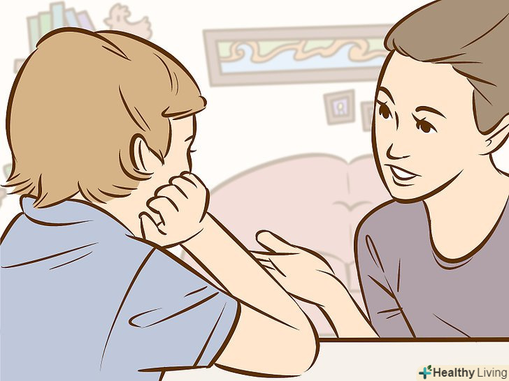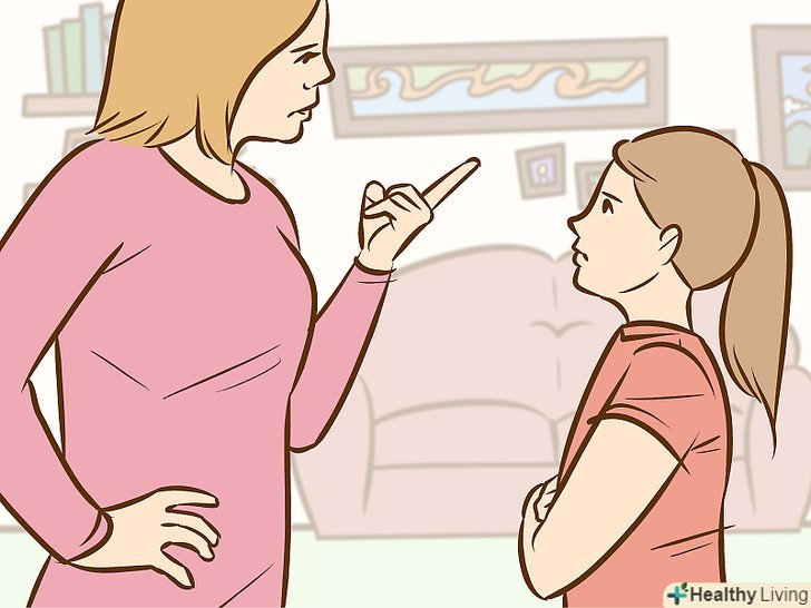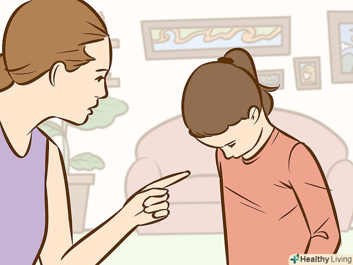- Уникайте прочуханки або шльопання. Діти, яких б'ють, навряд чи будуть слухати вас, і дослідження показують, що вони з більшою ймовірністю будуть битися з іншими дітьми і тим чи іншим чином проявляти агресію при вирішенні конфліктних ситуацій.[6] крім того, у дітей, які зазнали насильства в сім'ї, частіше розвивається посттравматичний стресовий розлад.[7]