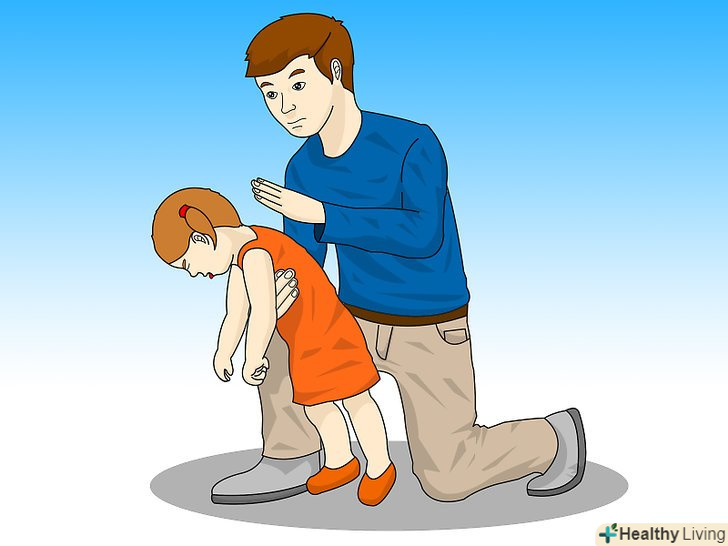 Дозвольте дитині прокашлятися.якщо дитина кашляє або давиться, це означає, що його дихальні шляхи лише частково блоковані, тому надходження кисню не повністю обмежена. Якщо це так, дозвольте дитині продовжувати кашляти, так як кашель є найбільш ефективним способом, виведення будь-яких сторонніх тіл.[1]- Якщо ваша дитина хрипить, як при задусі і він досить дорослий, щоб зрозуміти вас, спробуйте пояснити дитині, що потрібно прокашлятися або покажіть, як це зробити, перш ніж почати надання першої допомоги.[2]