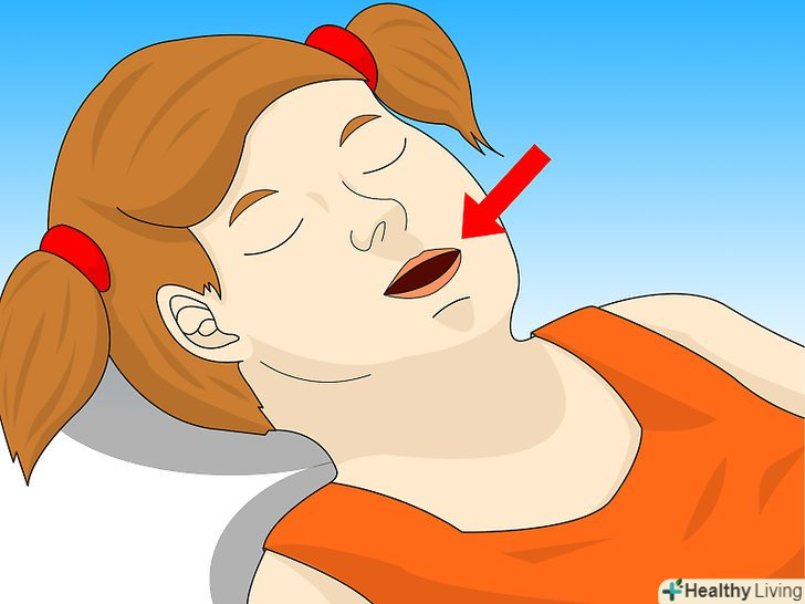 Перевірте, що знаходиться в роті дитини. перш ніж ви почнете робити штучне дихання, відкрийте рот дитини і подивіться чи не залишилося там нічого з сторонніх тіл.якщо ви побачите щось, видаліть це своїми пальцями.[6]