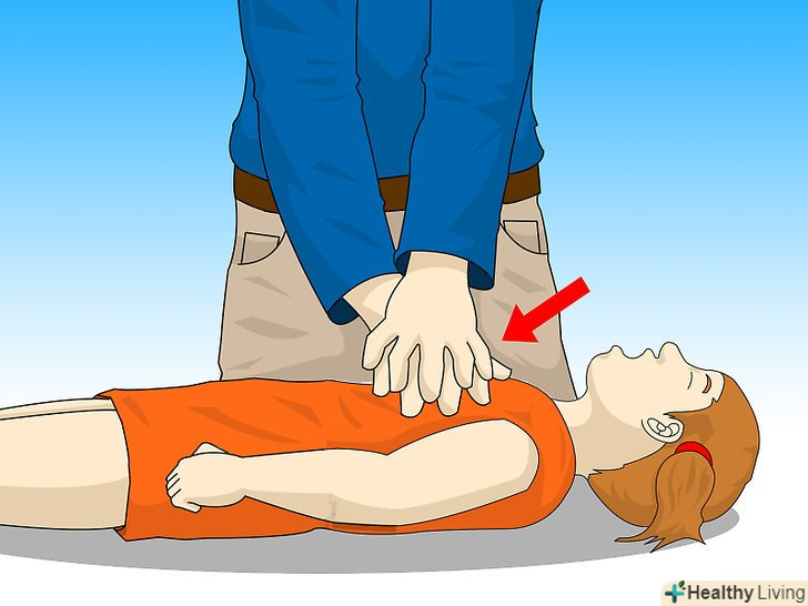 - Будьте обережні в разі проведення такої процедури у маленької дитини, і не тисніть до упору на грудну кістку, так як це може привести до травми. Тримайте руки прямо над пупком.[6]