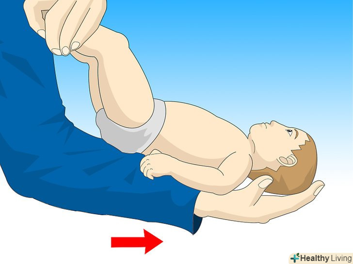 - Обережно поверніть дитину, міцно перетримуючи вашої другою рукою і долонею, дитини спереду.[1]