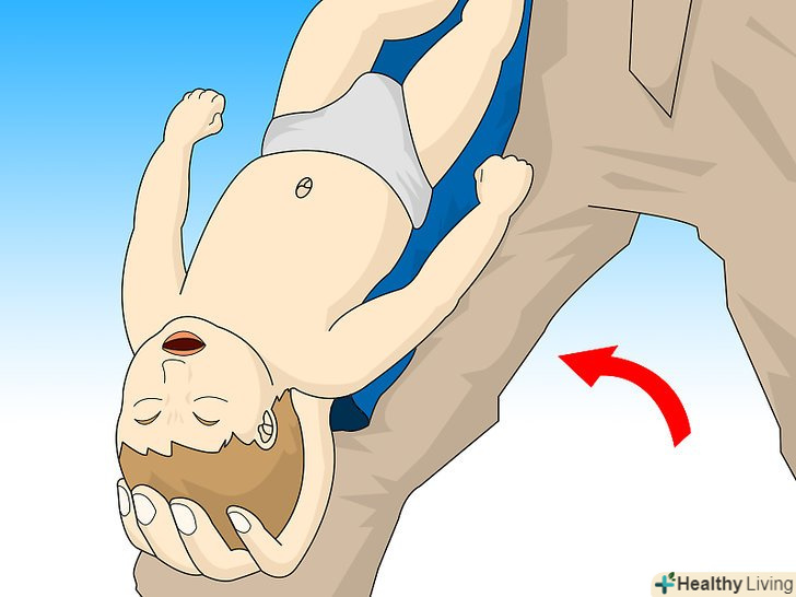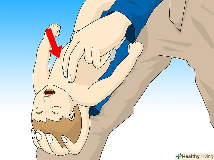 Повторюйте, поки чужорідне тіло не вийде або дитина не почне кашляти.якщо дитина все ще задихається після п'яти ляпасів по спині і п'яти абдомінальних поштовхів, повторити всю процедуру знову і продовжуйте робити це, поки предмет не вийде, дитина почне кашляти, плакати або дихати, або не прибуде Швидка медична допомога.[6]