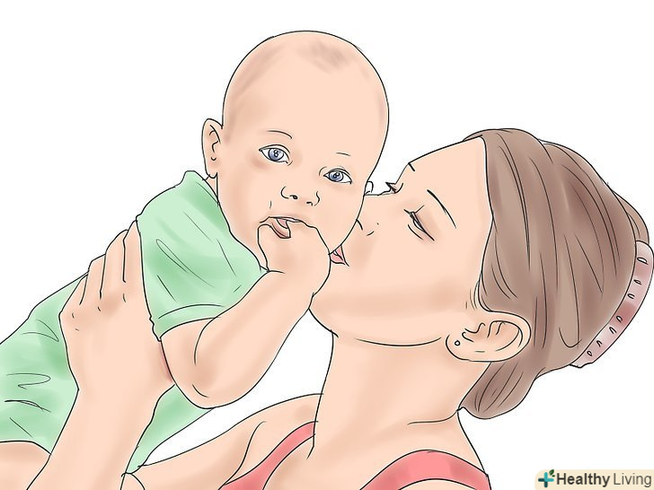 Будьте поруч.крім того, щоб просто бути поруч з малюком, коли ви йому потрібні, дуже важливо, щоб дитина потопала в увазі і любові, чого можна досягти за допомогою фізичного контакту.[9]- Тримайте дитину на руках якомога частіше, притискайте до себе, годуєте. Тримайте дитину на руках при можливості і не залишайте його без нагляду в ліжечку або надовго в дитячому сидінні.