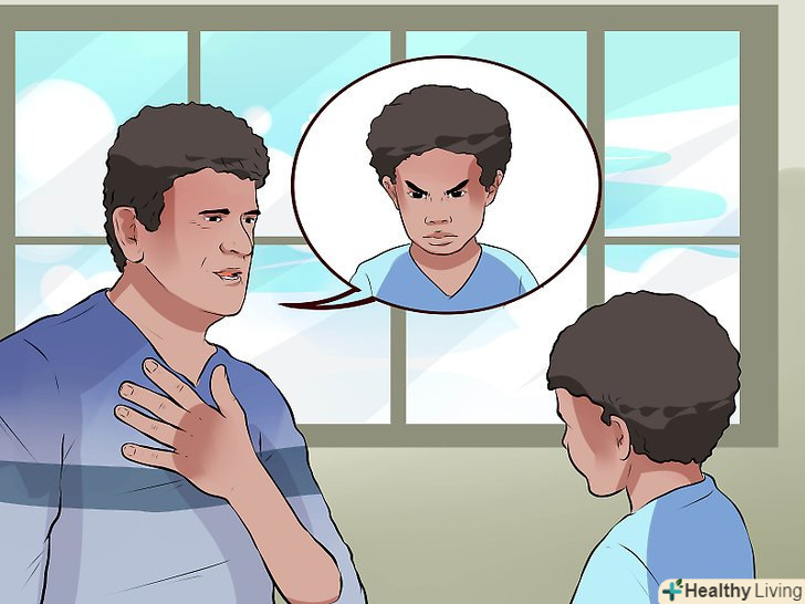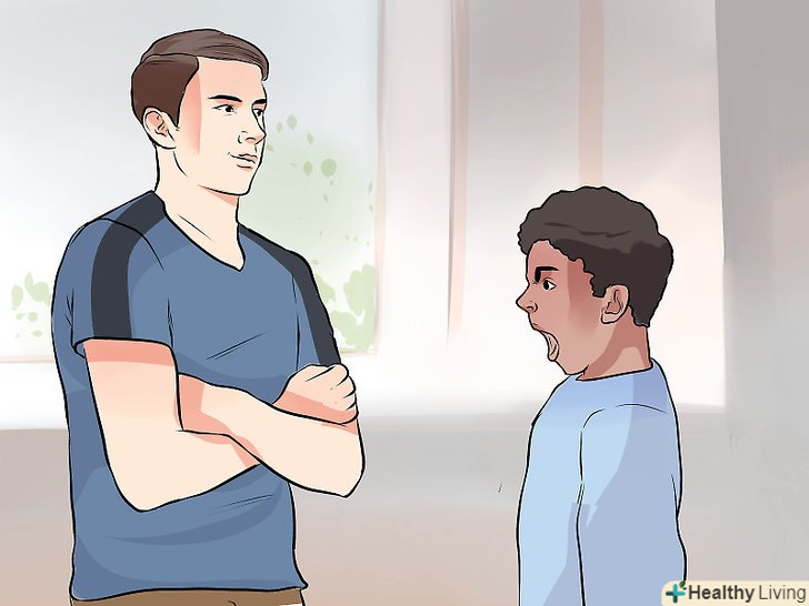 Не кричіть на нього.коли дитина влаштовує істерику, і ви засмучені його поведінкою, у вас може з'явитися бажання накричати на нього. Однак крик навряд чи допоможе в такій ситуації, і, швидше за все, він тільки збільшить рівень стресу у вас, і у вашої дитини.[10]- Замість цього говорите розміреним і спокійним голосом. Якщо ви відчуваєте, що хочете накричати, краще взагалі промовчіть. Якщо ви втрачаєте самовладання, постарайтеся відволіктися від ситуації на кілька хвилин за умови, що ваша дитина за цей час не заподіє собі шкоди.