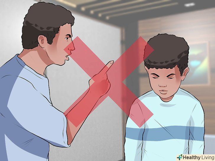 Не сходіть зі шляху.іноді застосування покарань за порушення правил може бути проблемою. Однак якщо дитина порушила правило, дуже важливо, щоб ви робили те, що обіцяли, і робили це своєчасно. В іншому випадку дитина зрозуміє, що ви самі не дотримуєтеся правил, так чому тоді він повинен це робити?[15]- Якщо з якихось причин ви не можете відразу ввести покарання, поясніть дитині, що ви обов'язково зробите те, що обіцяли, але це буде пізніше. Поясніть причину затримки, щоб він розумів, чому він не покараний за погану поведінку зараз.