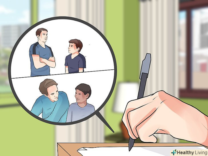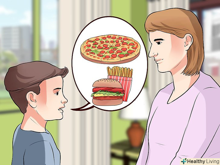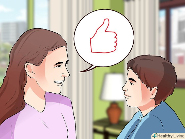 Розкажіть дитині про свої побажання щодо його дій.якщо ваша дитина поводиться погано або робить те, що Ви б не хотіли, щоб він робив, недостатньо просто сказати: "припини!». Замість цього скажіть, що б ви бажали, щоб він робив, і яка нагорода його чекає за правильну поведінку.[13]- Наприклад, якщо дитина накричав на свого молодшого брата або сестру, скажіть: «Пам'ятай, у нас є правило про крик. Якщо вона чимось тебе засмучує, краще піди від неї, замість того щоб кричати. Коли я побачу, що ти так зробив, я візьму тебе на той фільм, який ти так хотів подивитися».