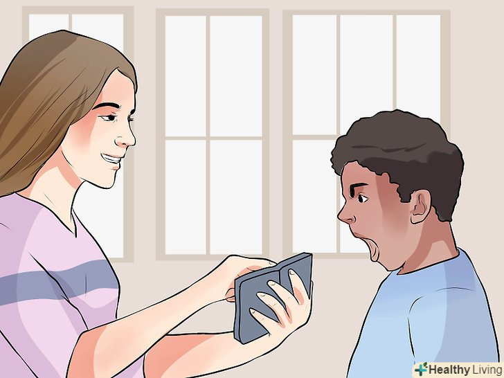 Відверніть його.іноді істерики можуть бути настільки сильними, що ніякі доводи не діють. В цьому випадку можна спробувати відвернути дитину його улюбленою книгою або соскою, якщо він ще маленький.[8]- Однак після закінчення істерики все одно не забудьте обговорити шляхи вирішення проблем в майбутньому.