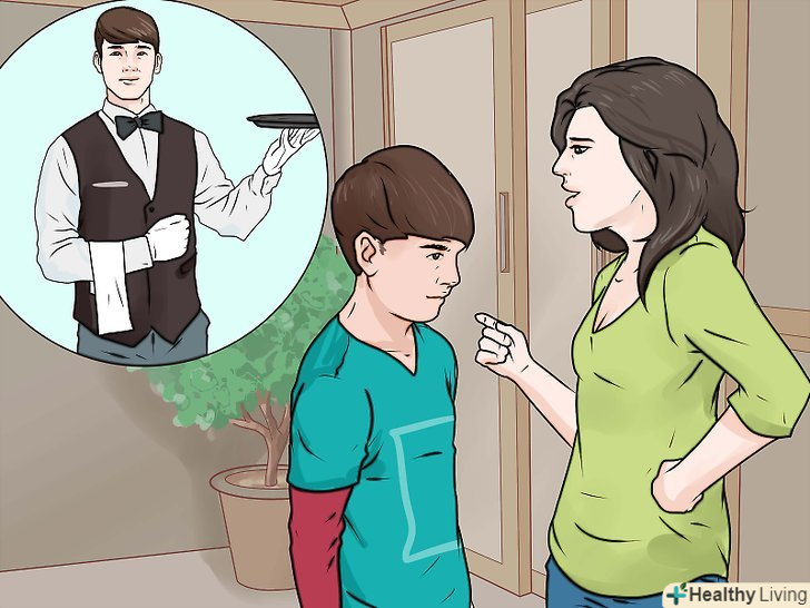 Призначте покарання, яке вимагає позитивних дій від вашої дитини.замість фізичного покарання або осоромлення, що викликає у підлітків злість і образу, зосередьтеся на створенні покарання, яке вимагає позитивної реакції від вашої дитини. Це дозволить запобігти пошкодженню, завданому вашим відносинам крадіжкою, і дозволить вашій дитині краще зрозуміти значення чесності.[5]- Наприклад, ви зловили підлітка на крадіжці грошей з вашого гаманця. Ви можете покарати його, зобов'язавши виплатити всі гроші, які він у вас взяв. Це займе деякий час, тому що йому знадобиться підробіток або робота для того, щоб повернути гроші. Але так він буде вчитися справлятися з наслідками своїх дій, стане більш відповідальним, знайде роботу і зрозуміє, чому красти погано.
