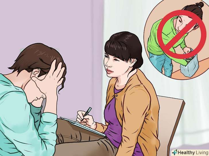 Поговоріть з сімейним консультантом або терапевтом, якщо ваша дитина продовжує красти.якщо ви зловите його на цьому знову, це може стати приводом для звернення до сімейного психолога. Деякі підлітки крадуть з причин, з'ясування яких зажадає сімейних або індивідуальних сеансів психотерапії. Не дозволяйте крадіжці увійти в звичку у підлітка, так як це може привести до більш серйозних наслідків і спотворення моральних цінностей вашого чада.[9]- У деяких підлітків може розвинутися клептоманія, рідкісне компульсивний розлад, під час якого людина відчуває тривогу або напругу перед крадіжкою, а потім відчуває полегшення або задоволення. Поговоріть зі своїм лікарем або терапевтом, якщо ви підозрюєте, що подібний розлад може розвинутися у вашої дитини.