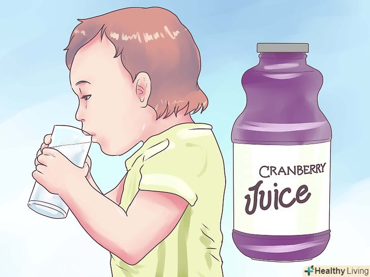 Давайте дитині більше журавлини.вплив журавлини на зниження ризику ІМП-це все ще предмет численних дискусій. Деякі медичні дослідження показали позитивні результати, в той час як інші нічого не підтвердили. Ягоди журавлини містять кілька речовин, які, згідно з дослідженнями в лабораторіях, мають антибактеріальну дію. Якщо ви хочете спробувати цей метод для своєї дитини[5]:- Давайте йому пити принаймні по 250 г журавлинного соку в день.