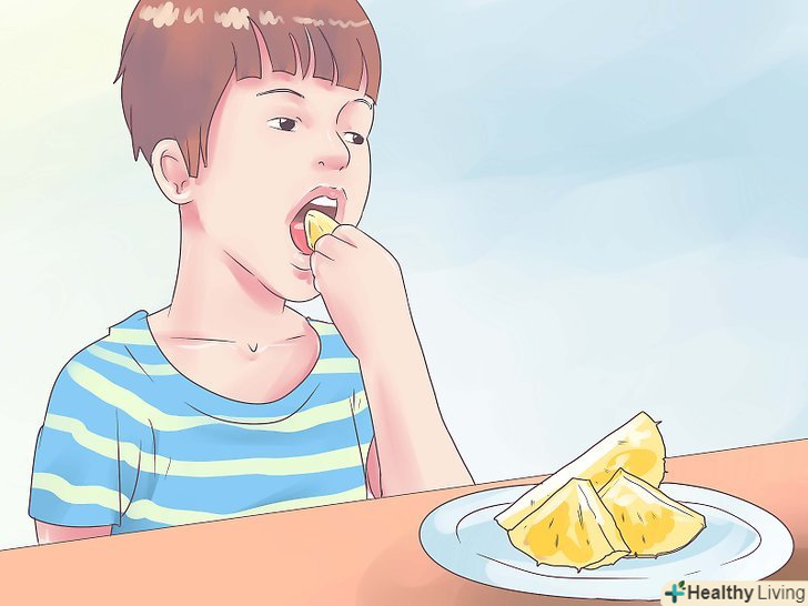Розгляньте можливість, щоб дитина більше їла ананасів.ананаси за своєю природою містять суміш ферментів (бромелайн), які розщеплюють білки, включаючи білки, які сприяють запаленню. У поєднанні з іншим аналогічним ферментом (трипсином) він істотно підвищує ефективність антибіотиків для лікування ІМП.[6]- Проводилися лише деякі дослідження, щоб довести позитивний вплив ананасів на дітей, але ці ласощі для дитини ніколи не буде зайвим (якщо у дитини немає алергії - в цьому випадку не потрібно давати йому ананас).