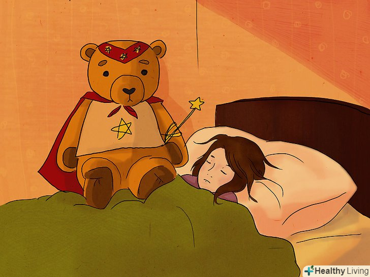 Дайте дитині компаньйона.ваша дитина може використовувати плюшеву іграшку, як нагадування, що він в безпеці. Навчіть дитину стискати або ударяти іграшку кожен раз, коли йому страшно, щоб відчути м'якість, теплоту і надійність, що виходять від іграшки. Це допоможе вашій дитині заспокоюватися самостійно.- Нехай іграшка стане нагадуванням того, що монстри не існують. Скажіть дитині, що коли йому стане страшно, нехай помацає тварина і переконається, що воно існує. Він може примовляти: "плюшева іграшка-справжня, а чудовиська –