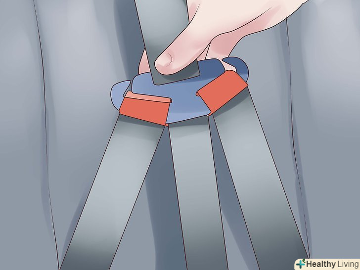 Одягніть ремені.вставте ремені в отвори для них правильно, і переконайтеся, що дитина буде в безпеці. Знову, зверніться до довідника в разі необхідності.- Переконайтеся, що ремені не вивертаються, коли ви хочете їх закріпити. Вигнуті ремені-показник того, що ви їх занадто швидко прикріпили, і можуть подряпати шкіру дитини. Навіть гірше, такі ремені не зможуть утримати дитину при зіткненні.