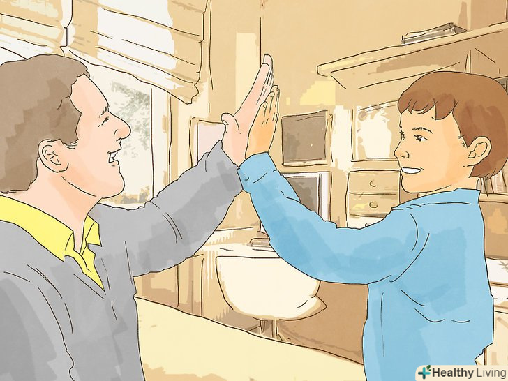Хваліть дитину, коли він добре поводиться.якщо дитина успішно впорався зі справою, то вам потрібно показати, що ви пишаєтеся його результатом! Похвала і визнання багато значать для будь-якої дитини. Так він зрозуміє, що ви помітили його успіхи і відчуваєте гордість. Зазвичай дитині важливо отримати увагу і схвалення батьків, тому не позбавляйте його таких емоцій.[18]- Наприклад, скажіть: "Я знаю, що ти не хотіла прибирати в кімнаті, але я пишаюся, що ти зробила все сама. Тепер можеш піти в гості до подруг".