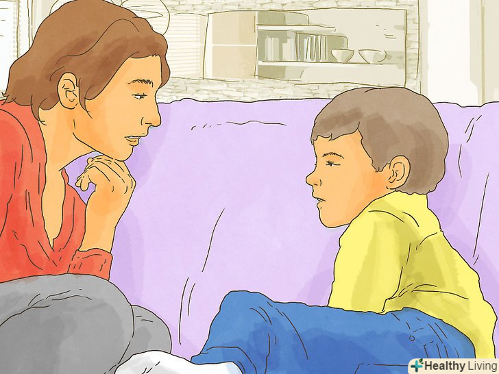 Обговорюйте поведінку дитини.молодші школярі вже досить дорослі, щоб розуміти і усвідомлювати свої дії. Використовуйте таку можливість навчити дитину співчуттю, а також пояснити, чому деякі вчинки вважаються недоречними або поганими. Так дитина почне розуміти, як впливає своїми діями на інших і на самого себе.[15]- Наприклад, школярі часто починають брехати, щоб привернути увагу або розсунути межі. Якщо дитина обдурив вас, то поясніть, що брехня ображає інших людей, а сама дитина ризикує втратити довіру і навіть друзів.