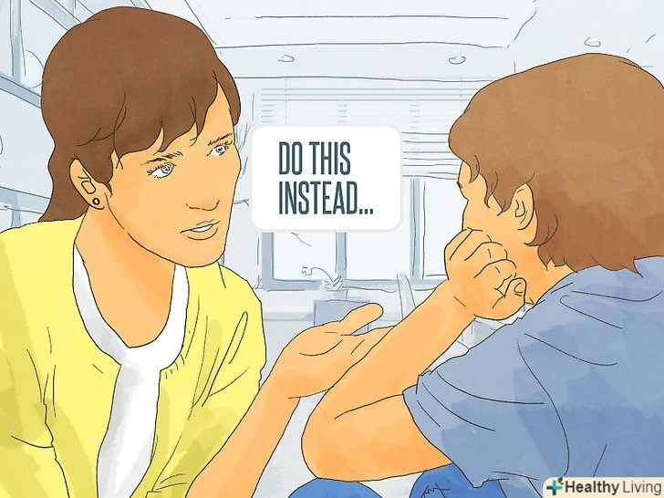 - Використовуйте прості та короткі пояснення. дитина продовжує накопичувати свій словниковий запас, тому не використовуйте складних формулювань. Говоріть з маленькою дитиною простою мовою і максимально короткими фразами. Поясніть, що малюк зробив не так і чому будуть конкретні наслідки. Потім скажіть, як потрібно поводитися в майбутньому.[11]