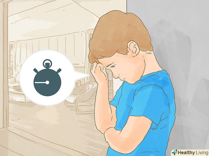 Ставте дитину в кут.такий метод дозволяє дитині заспокоїтися і взяти себе в руки. Дитина балується або нікого не слухає? Поставте малюка в кут, щоб він заспокоївся і зрозумів, що так себе вести не можна.[10]- Зазвичай кількість хвилин в кутку відповідає кількості прожитих дитиною років. Також можна залишити дитину в кутку до тих пір, поки він не заспокоїться.