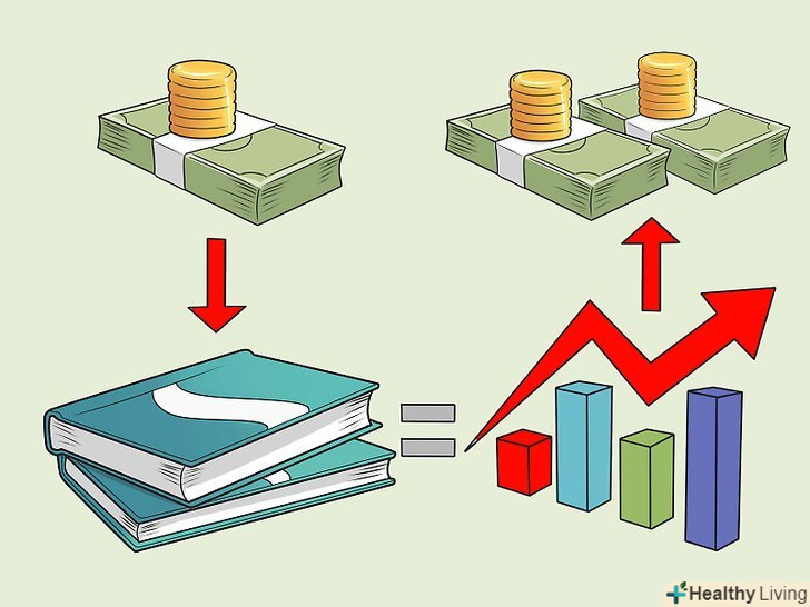 Купуйте акції та облігації. акції являють собою частку в компанії. Коли ви володієте акціями, ви є одним з власників компанії і маєте право на певну частину активів і прибутку компанії.[6] облігаціями називають боргові цінні папери, випущені компаніями або урядом. Компанії та облігації випускають облігації з метою фінансування своїх повсякденних операцій або певних проектів.- Коли ви купуєте облігацію, ви позичаєте гроші емітенту, незалежно від того, хто ним є, компанія або державний орган, на певний період часу. В якості плати за користування вашими грошима ви отримуєте відсоток від суми позики. Він виплачується разом з усією сумою до певної дати (дати погашення облігації) або пізніше за вибором емітента. Наприклад, за облігацію на суму 10 000 руб. з річним відсотком 7% Ви отримаєте дохід в 700 руб.