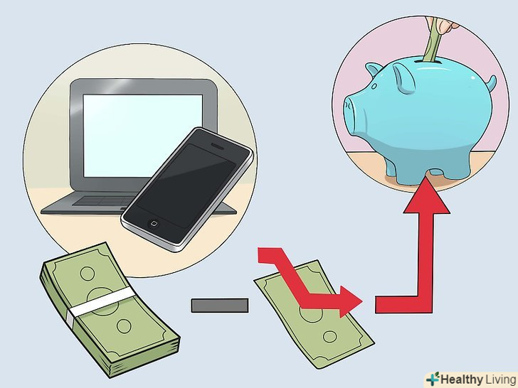 Постарайтеся знизити витрати на житло.якщо ви знімаєте житло, то постарайтеся знизити витрати на орендну плату. Також важливо знизити інші витрати, наприклад, витрати на інтернет, стільниковий зв'язок і їжу. Постарайтеся знизити витрати хоча б на 600-1200 руб.в місяць – сумарно за рік це вже дасть непогану економію.[11]- Зосередьтеся на тому, щоб накопичувати якомога більше грошей завдяки скороченню витрат. Це означає Ведення скромного способу життя і відмова від витрати грошей без необхідності.