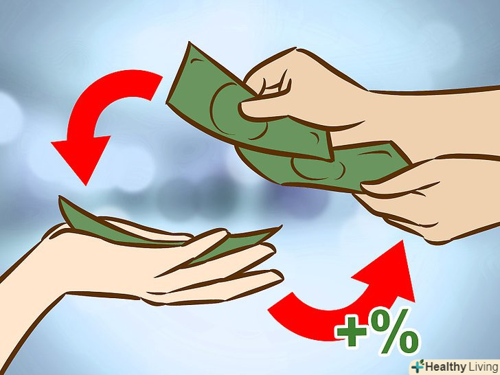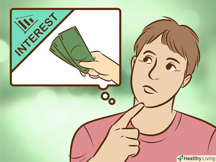 Заробляйте на відсотках.замість того щоб дозволяти Вашим грошам чахнути на чековому рахунку в банку (або під матрацом), пустіть їх у справу на грошовому ринку під більший відсоток або покладіть на депозит. Такий рахунок має більший відсоток, ніж звичайний. Попросіть працівника банку допомогти вам покласти гроші на один з таких рахунків.[9]- Зауважте, що такі рахунки вимагають мінімальних вкладень, щоб почати отримувати відсоток. Такі рахунки також можуть бути довгостроковими, при якому ви не зможете отримати доступ до своїх коштів, не заплативши при цьому пеню.