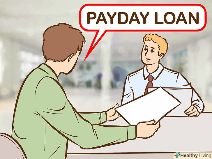Отримайте кредит до зарплати.якщо у вас є робота, але вам потрібні додаткові кошти до наступної зарплати, подумайте про те, щоб взяти кредит. Це короткострокові позики, які можна взяти за відносно невелику суму грошей по Інтернету або в спеціалізованих установах.[14]- Будьте обережні з цим видом кредитів, так як їх процентна ставка надзвичайно висока. Ці кредити слід брати лише в крайньому випадку.