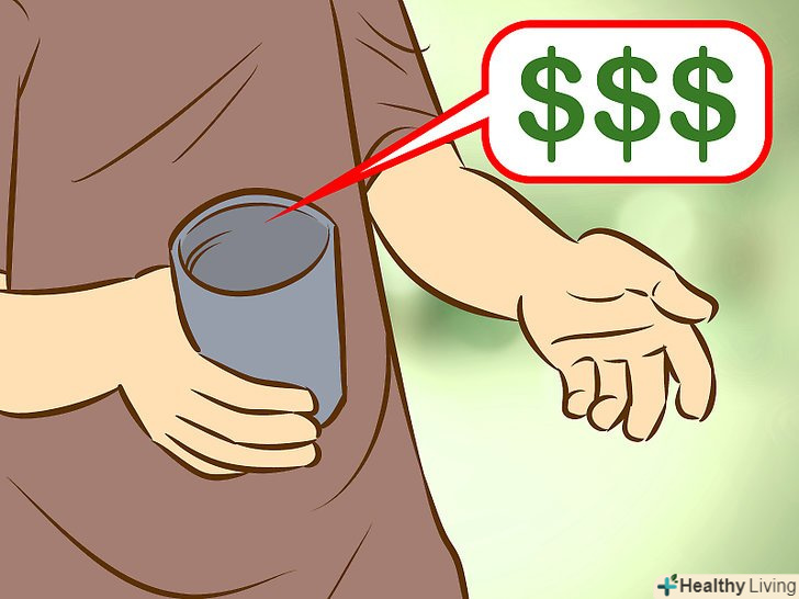 Просіть милостиню.якщо нічого іншого не виходить, у вас завжди залишається варіант просто попросити грошей. Якщо ви зважитеся на це, тоді вам варто робити це на жвавій вулиці або в іншому людному місці з великою кількістю перехожих і транспорту. Жебрацтвом можна заробити досить пристойну суму, але для цього вам, можливо, доведеться простояти чимало годин, та ще й в погану погоду.[7]- Якщо ви збираєтеся просити милостиню, знайте, що образ-це все. Ви повинні виглядати нужденним, щоб люди захотіли допомогти вам, але ваш образ не повинен бути небезпечним або лякаючим.