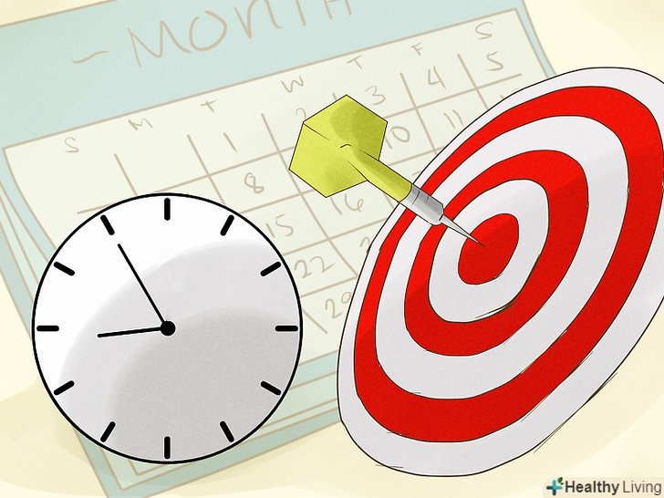 Задайте часові рамки для своїх цілей. встановлюючи амбітні (але досяжні) часові рамки для досягнення своїх цілей, ви створюєте собі потужну мотивацію. Припустимо, ви поставили за мету купити собі будинок через два роки. В цьому випадку, вам треба ознайомитися із середньою вартістю на будинки в районі, в якому ви хочете жити, а також почати збирати гроші на перший внесок на ваш новий будинок (зазвичай перший внесок повинен становити не менше 20% від вартості будинку).[3]- Наприклад, якщо будинки в бажаному районі коштують приблизно по 3 000 000 рублів, вам необхідно мати на руках 3 000 000 х 20% = 600 000 рублів через два роки. Досяжність або недосяжність цієї мети залежить від ваших доходів.