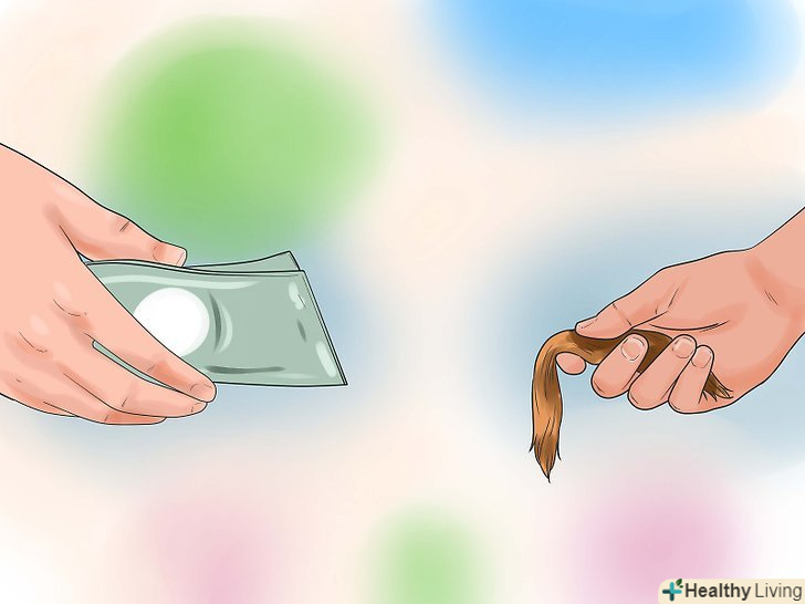 Продавайте органічні матеріали.як би дивно це не звучало, ви можете продавати складові свого тіла за нормальні гроші. Ми не говоримо про органи, але такі речі, як плазма, сперма і волосся завжди в ходу.- Якщо у вас довге здорове волосся (більше 30 сантиметрів), можна обрізати їх і продати в одну з компаній, що виробляють перуки. Високо цінуються волосся рідкісного кольору, які ніколи не були пофарбовані. Природно, чим більше довжина волосся, тим дорожче вони коштують.