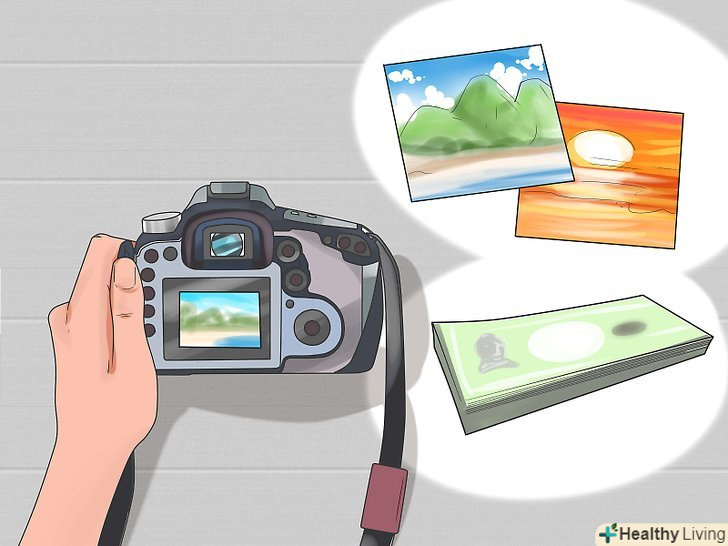 Продавайте фотографії. Фото для стоків (біржі з продажу знімків) досить прості, кілька узагальнені кадри, які люди можуть використовувати в своїх статтях, буклетах, брошурах. Такі фото коштують небагато, але якщо вам вдасться створювати тематичні колекції, на цьому можна буде заробити, особливо якщо продати фото кілька разів. Найкраще в цьому способі-простота: просто завантажив фото з носія, відправив на сайт і чекаєш оплати.