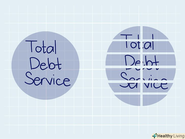 Дізнайтеся, що таке вартість обслуговування боргу.вартість обслуговування боргу - це деяка сума грошей, необхідна для виплати нарахованих за певний період відсотків і частини основної суми боргу. Як правило, платежі в рахунок обслуговування боргу виплачуються раз на рік. При подачі заявки на отримання кредиту юридичним і фізичним особам рекомендується підготувати дані про сумарні витрати на покриття боргів.[1]- Фізична особа може робити платежі по іпотеці або освітньому кредиту.