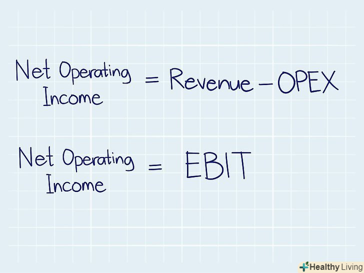Визначте чистий прибуток.чистий операційний прибуток-це прибуток за вирахуванням операційних витрат, але до сплати податків і нарахованих відсотків.[16] чистий операційний прибуток є еквівалентному прибутку до сплати відсотків і податків (EBIT). Розмір чистого операційного прибутку відображається у звіті про прибутки та збитки.[17]- Операційні витрати-це витрати, пов'язані з основною діяльністю компанії, наприклад, заробітна плата і витрати на дослідження і розробки.[18]