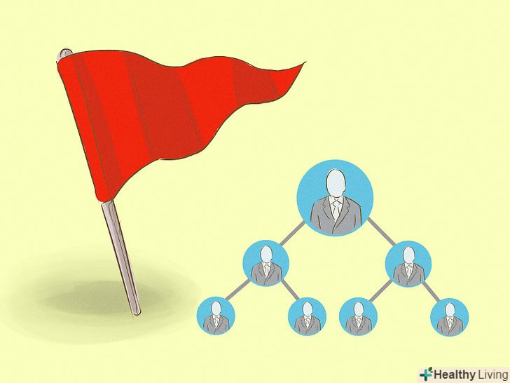 Вивчіть основні елементи фінансової піраміди.якщо в загальному, то фінансові піраміди обіцяють, отримавши від вас гроші, принести величезний дохід в найкоротші терміни. І так, шахраї, що стоять за пірамідою, можуть виконати величезну роботу, щоб фінансова піраміда виглядала як підприємство мультирівневого маркетингу. Проте, незважаючи на всі заяви організаторів піраміди про те, що вони будуть щось продавати або надавати, вони будуть використовувати гроші, отримані від новачків, на виплати тим, хто вклався на ранній стадії розвитку піраміди.- Зверніть увагу на інші насторожують ознаки. 1 - розлогі відповіді на питання про те, чим же займається компанії, та й то за моделлю "а ось ви зареєструйтеся у нас, заплатите - і самі дізнаєтеся"; 2 - Компанія не пропонує своїм членам на продаж товари або послуги, а якщо і пропонує, то за вкрай завищеними цінами; 3 - велика частина можливого доходу буде генеруватися за рахунок внесків нових членів організації; 4-вкрай часто звучать запевнення, що все легально.