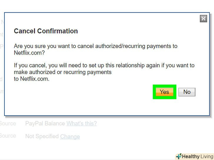 НатиснітьТак, щоб підтвердити свої дії. Регулярний платіж буде скасовано.