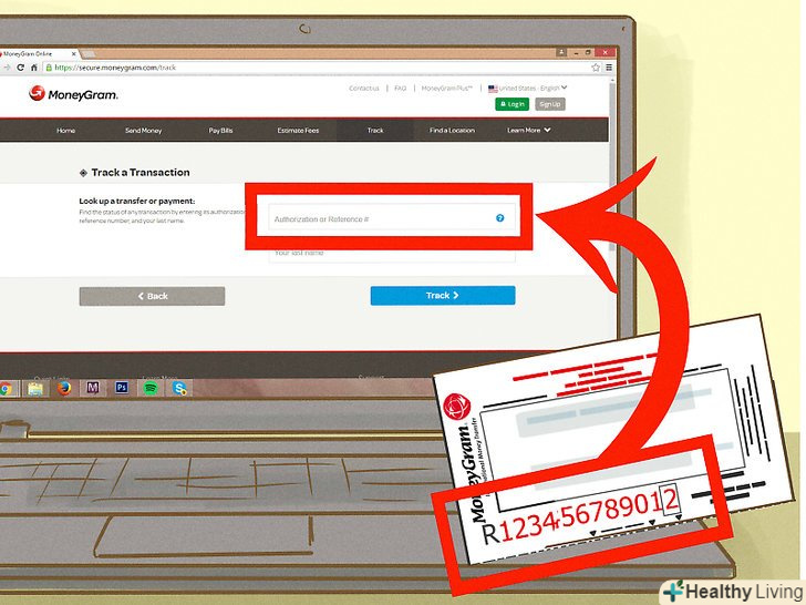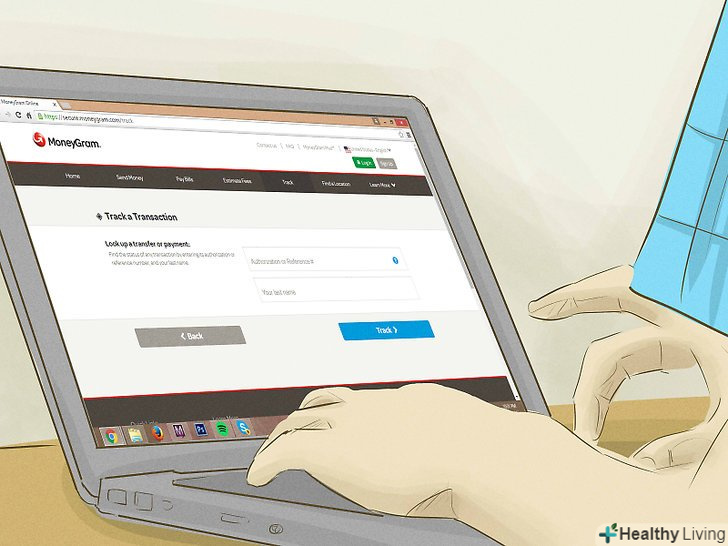 Для онлайнових перекладів скористайтеся функцією «Track a Transfer» (відстежити переклад).для цього відправник повинен надати вам вихідний номер переказу.[11]- Завдяки цьому ви зможете побачити статус перекладу, не маючи при цьому аккаунта на MoneyGram.