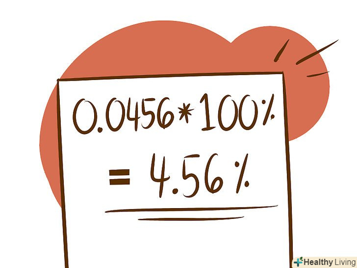Помножте отримане значення на 100, щоб отримати відсотки. у нашому прикладі: 0,0456 * 100 = 4,56%. Ви вирахували умовно нараховується відсоток за один рік.
