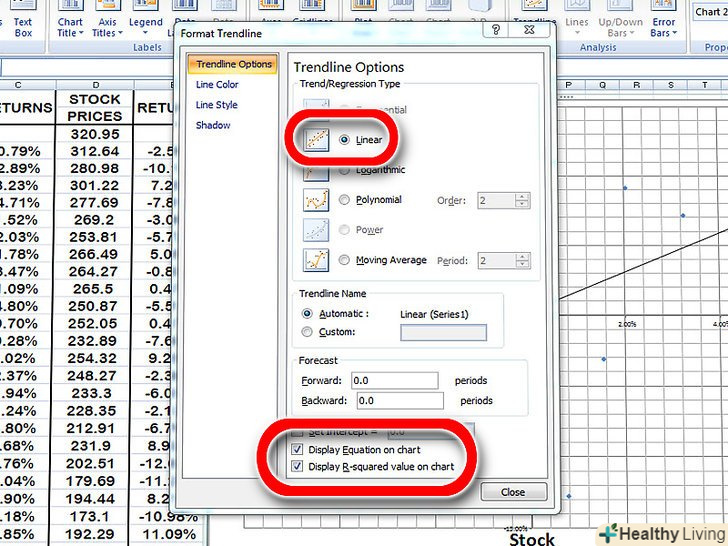 - У старіших версіях Excel це можна зробити, клацнувши на Макет-лінія тренда-Додаткові параметри лінії тренда і зазначивши відповідні віконця.