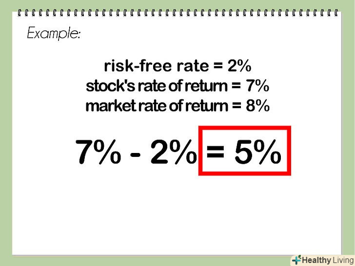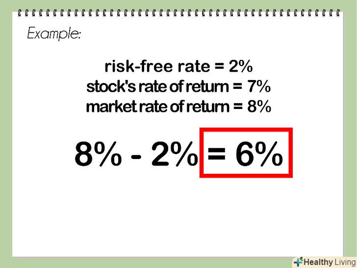 Відніміть безризикову ставку з прибутковості ринку (або індексу).якщо прибутковість ринку дорівнює 8% і безризикова ставка знову дорівнює 2%, то різниця дорівнює 6%.