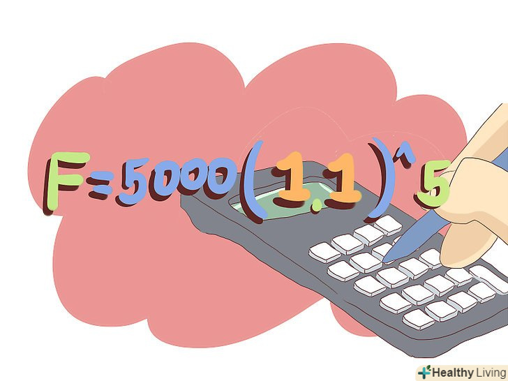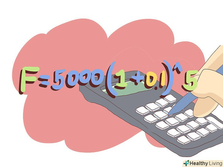 Створіть свою формулу. як тільки ви закінчили читати завдання, напишіть формулу на основі стандартного рівності F = P (1 + i)^N. для нашої задачі формула прийме такий вигляд:- F = 5000(1 + 0.1)^5.
